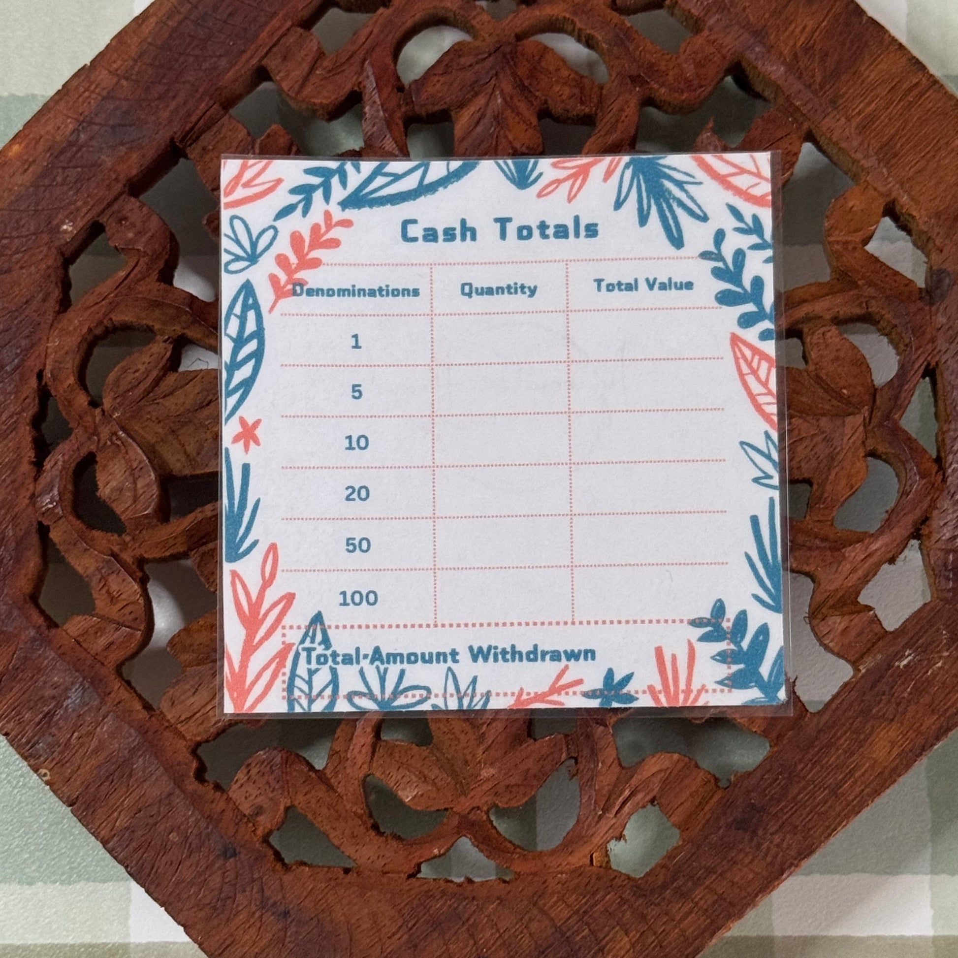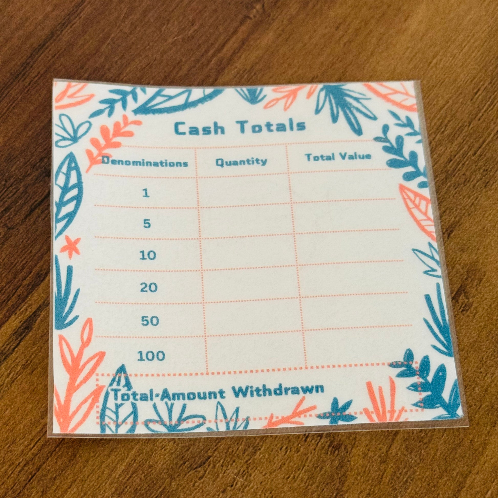 Add a splash of cheerful charm to your cash routine with this made-to-order reusable teller slip, featuring a coral and blue floral border. Designed to brighten up your bank visits, this slip blends soft color with smart functionality.