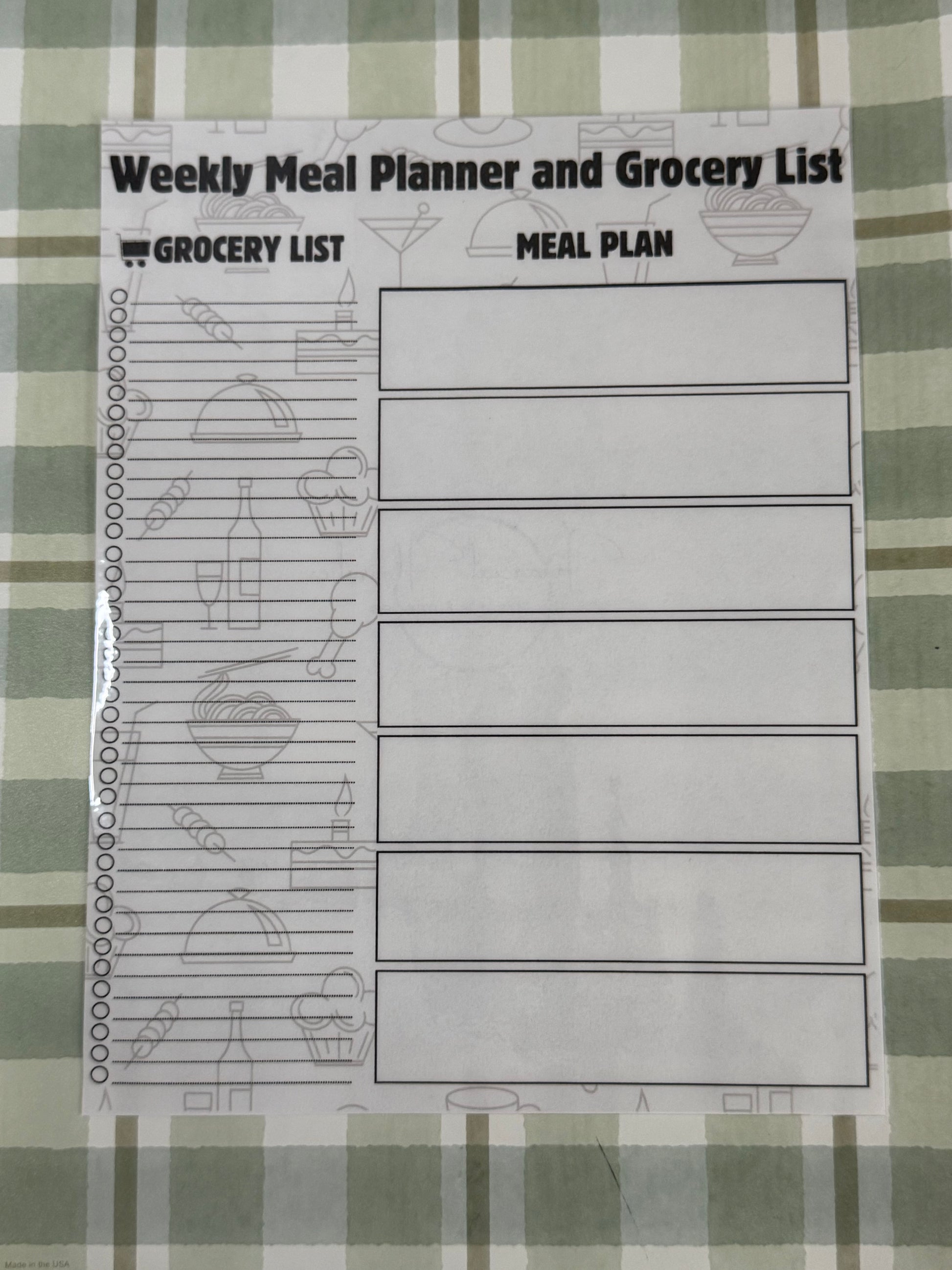 • Design: Black-and-white themes with space for weekly meals and grocery items