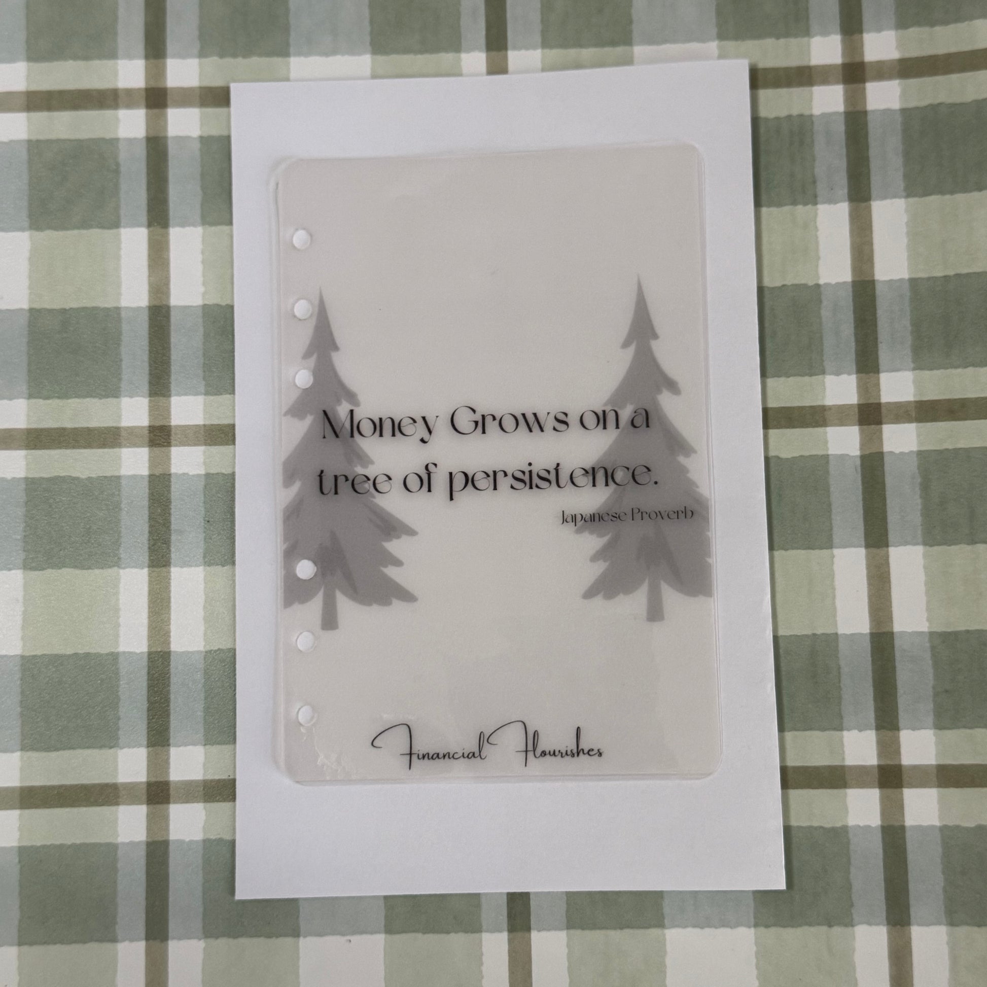 Encourage consistency with the Persistence Dashboard—featuring a soft pine tree silhouette and a timeless proverb. This dashboard is your daily nudge to keep pushing forward, one deposit at a time.