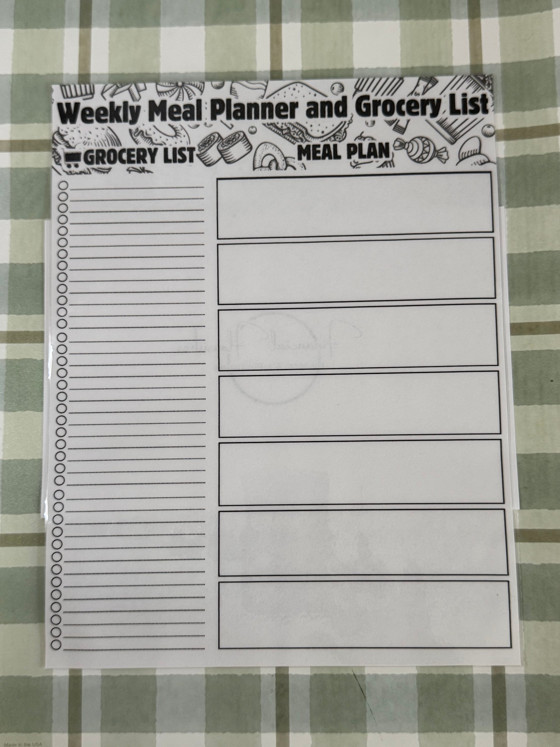 • Design: Black-and-white themes with space for weekly meals and grocery items